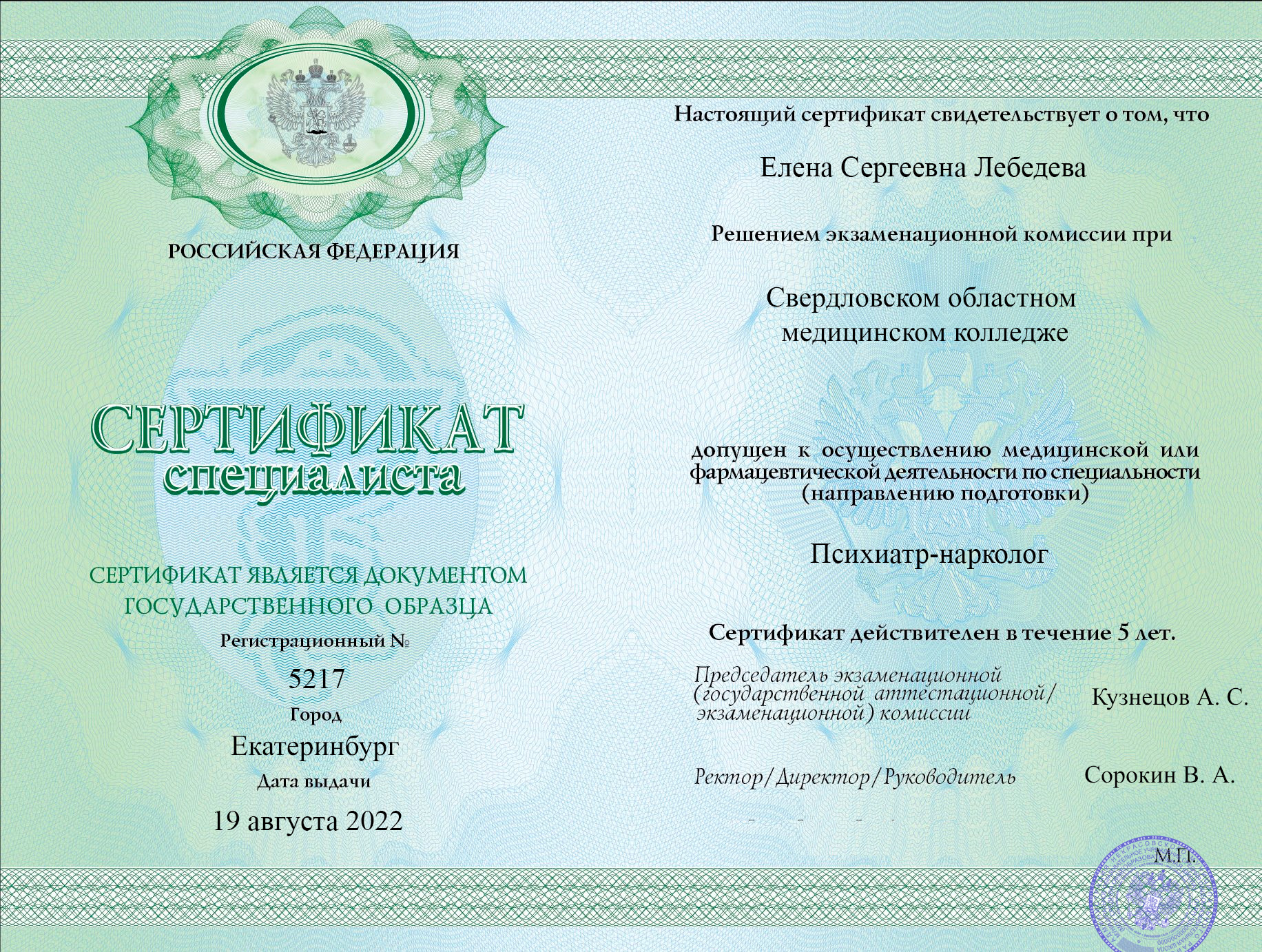 Елена Сергеевна Лебедева врач нарколог клиники доктора Стукаловой в Кинеле
